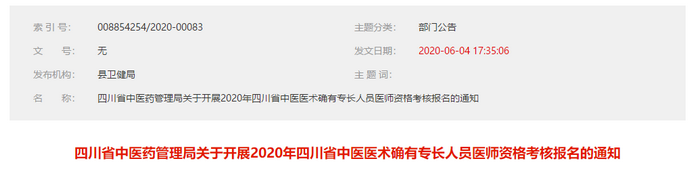 根據(jù)《中醫(yī)醫(yī)術確有專長人員醫(yī)師資格考核注冊管理暫行辦法》和《四川省中醫(yī)醫(yī)術確有專長人員醫(yī)師資格考核注冊管理實施細則(暫行)》的規(guī)定,現(xiàn)將我省2020年中醫(yī)醫(yī)術確有專長人員醫(yī)師資格考核報名事項通知如下: