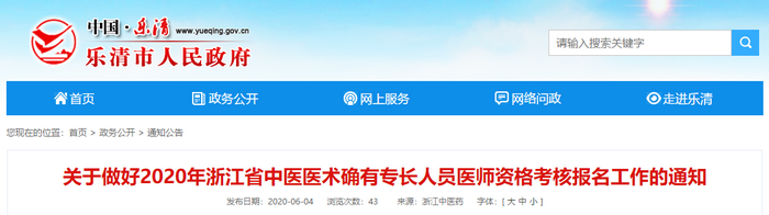 浙江樂清2020年中醫(yī)醫(yī)術(shù)確有專長醫(yī)師資格考核報名工作的通知,具體通知內(nèi)容醫(yī)學(xué)教育網(wǎng)搜集整理如下: