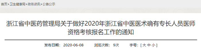 2020年浙江省中醫(yī)醫(yī)術(shù)確有專長人員醫(yī)師資格考核通告