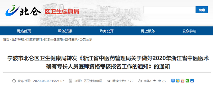 2020年浙江省中醫(yī)醫(yī)術(shù)確有專長人員醫(yī)師資格考核報名工作的通知