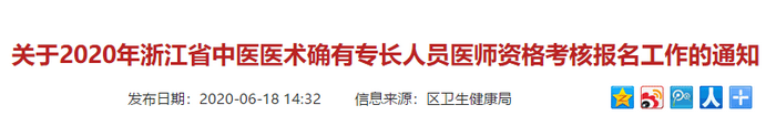 根據(jù)《浙江省中醫(yī)藥管理局關于做好2020年浙江省中醫(yī)醫(yī)術確有專長人員醫(yī)師資格考核報名工作的通知》(浙中醫(yī)藥〔2020〕5號),現(xiàn)將考核報名工作有關情況通知如下: