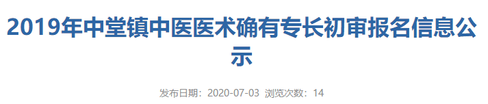 根據(jù)《東莞市衛(wèi)生健康局辦公室轉(zhuǎn)發(fā)省中醫(yī)藥局關(guān)于開(kāi)展 2019 年度廣東省中醫(yī)醫(yī)術(shù)確有專(zhuān)長(zhǎng)人員醫(yī)師資格考核報(bào)名工作的通知》(東衛(wèi)辦函〔2020〕4 號(hào))文件要求,中堂鎮(zhèn)衛(wèi)生健康局已對(duì)報(bào)考人員材料進(jìn)行了初步審核,現(xiàn)將我鎮(zhèn)2019年中醫(yī)醫(yī)術(shù)確有專(zhuān)長(zhǎng)人員醫(yī)師資格考核報(bào)名人員情況予以公示,公示期為2020年7月3日至7月7日。公示期間,如對(duì)中醫(yī)醫(yī)術(shù)確有專(zhuān)長(zhǎng)人員醫(yī)師資格考核報(bào)名人員有不同意見(jiàn),請(qǐng)向中堂鎮(zhèn)衛(wèi)生健康局提出。