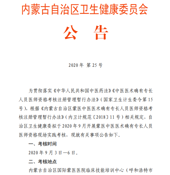 “內(nèi)蒙古2020年蒙醫(yī)中醫(yī)醫(yī)術(shù)確有專長人員醫(yī)師資格現(xiàn)場實踐考核通知”文章醫(yī)學教育網(wǎng)小編搜集整理,更多醫(yī)考信息、備考資料、模擬試題請關(guān)注醫(yī)學教育網(wǎng)。