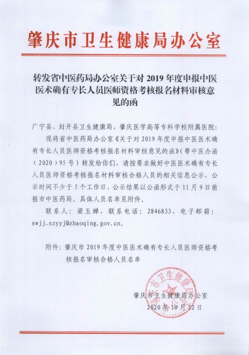“廣東省肇慶市2019年中醫(yī)醫(yī)術(shù)確有專長(zhǎng)人員醫(yī)師資格考核報(bào)名審核意見(jiàn)函”文章醫(yī)學(xué)教育網(wǎng)小編搜集整理,更多醫(yī)考信息、備考資料、模擬試題請(qǐng)關(guān)注醫(yī)學(xué)教育網(wǎng)。