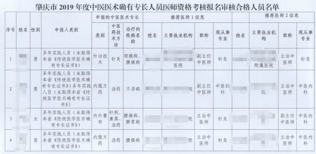 廣東省2019年中醫(yī)醫(yī)術(shù)確有專長(zhǎng)人員醫(yī)師資格考核報(bào)名初審名單匯總