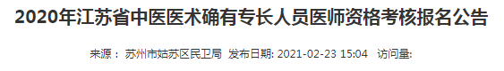 2020年度中醫(yī)醫(yī)術(shù)確有專長(zhǎng)人員醫(yī)師資格考核蘇州市報(bào)名地址及電話