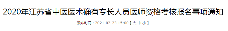 2020年江蘇省中醫(yī)醫(yī)術確有專長人員醫(yī)師資格考核公告