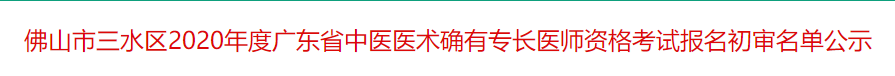 關于“佛山市三水區(qū)2020年中醫(yī)醫(yī)術確有專長人員醫(yī)師資格考核報名初審名單”的問題很多考生都很感興趣,醫(yī)學教育網小編整理如下內容,預??忌荚図樌?。