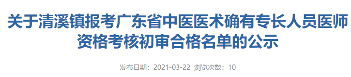 “2020年東莞市清溪鎮(zhèn)中醫(yī)醫(yī)術確有專長人員醫(yī)師資格考核報名通過初審人員”很多人都想知道,醫(yī)學教育網(wǎng)小編整理下文,希望可以幫助到大家。