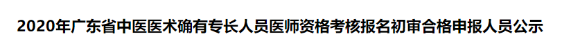 根據(jù)廣東省中醫(yī)藥局《關(guān)于開(kāi)展2020年度廣東省中醫(yī)醫(yī)術(shù)確有專(zhuān)長(zhǎng)人員醫(yī)師資格考核報(bào)名工作的通知》(粵中醫(yī)辦函〔2020〕124號(hào))文件精神,現(xiàn)將湘橋區(qū)初審合格申報(bào)人員相關(guān)信息進(jìn)行公示,公示期間如有異議,請(qǐng)實(shí)名反饋至湘橋區(qū)衛(wèi)生健康局。