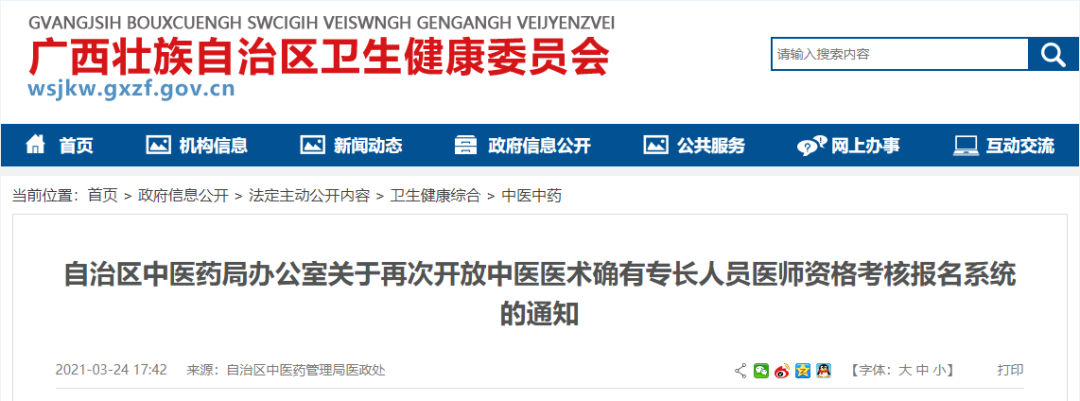 為進(jìn)一步做好2020年廣西壯族自治區(qū)中醫(yī)醫(yī)術(shù)確有專長人員醫(yī)師資格考核報名工作,結(jié)合近期工作實際,經(jīng)研究,定于2021年3月28日12:00-24:00再次開放中醫(yī)醫(yī)術(shù)確有專長人員醫(yī)師資格考核報名系統(tǒng),用于申報考核的申請人補充完善個人資料。請各地市、縣(市、區(qū))中醫(yī)藥主管部門高度重視,做好宣傳工作,通過各種形式將再次開放報名系統(tǒng)的通知及時告知申請人。