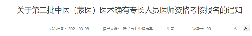 2021年內(nèi)蒙古第三批中醫(yī)(蒙醫(yī))醫(yī)術(shù)確有專(zhuān)長(zhǎng)人員醫(yī)師資格考核報(bào)名通知匯總