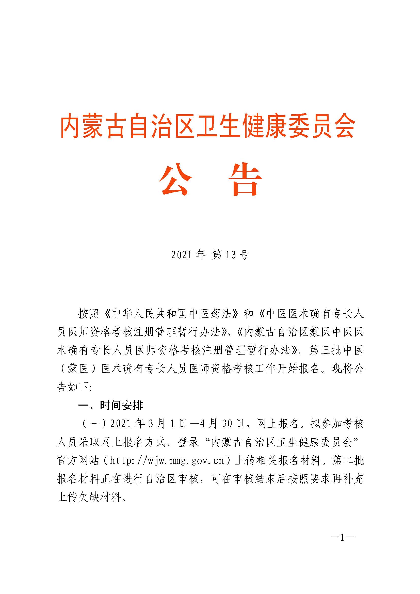 按照《中華人民共和國(guó)中醫(yī)藥法》和《中醫(yī)醫(yī)術(shù)確有專(zhuān)長(zhǎng)人員醫(yī)師資格考核注冊(cè)管理暫行辦法》、《內(nèi)蒙古自治區(qū)蒙醫(yī)中醫(yī)醫(yī)術(shù)確有專(zhuān)長(zhǎng)人員醫(yī)師資格考核注冊(cè)管理暫行辦法》,通遼市衛(wèi)生健康委已開(kāi)展第三批中醫(yī)(蒙醫(yī))醫(yī)術(shù)確有專(zhuān)長(zhǎng)人員醫(yī)師資格考核報(bào)名工作?,F(xiàn)將自治區(qū)衛(wèi)健委2021年第13號(hào)公告公布如下,請(qǐng)擬參加考核人員嚴(yán)格按照要求進(jìn)行報(bào)名。