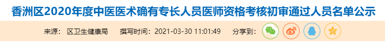 “珠海市香洲區(qū)2020年中醫(yī)醫(yī)術(shù)確有專長人員醫(yī)師資格考核初審?fù)ㄟ^人員名單”的內(nèi)容很多人都想知道,醫(yī)學(xué)教育網(wǎng)小編為此整理了“珠海市香洲區(qū)2020年中醫(yī)醫(yī)術(shù)確有專長人員醫(yī)師資格考核初審?fù)ㄟ^人員名單”,詳情如下: