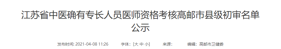 “江蘇省高郵市2020年中醫(yī)醫(yī)術(shù)確有專長(zhǎng)人員醫(yī)師資格考核初審名單”很多人都想知道,醫(yī)學(xué)教育網(wǎng)小編整理下文,希望可以幫助到大家。