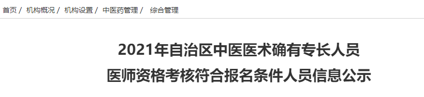 附件下載:2021年自治區(qū)中醫(yī)醫(yī)術(shù)確有專長人員醫(yī)師資格考核符合報名條件人員信息公示