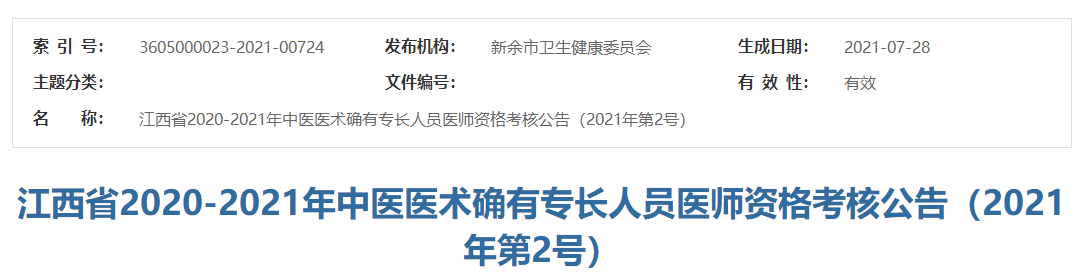 根據(jù)《中醫(yī)醫(yī)術(shù)確有專長(zhǎng)人員醫(yī)師資格考核注冊(cè)管理暫行辦法》(原國(guó)家衛(wèi)生和計(jì)劃生育委員會(huì)第15號(hào)令)和《江西省中醫(yī)醫(yī)術(shù)確有專長(zhǎng)人員醫(yī)師資格考核注冊(cè)管理實(shí)施細(xì)則》(贛衛(wèi)中醫(yī)發(fā)〔2019〕1號(hào))等有關(guān)規(guī)定,現(xiàn)就2020-2021年江西省中醫(yī)醫(yī)術(shù)確有專長(zhǎng)人員醫(yī)師資格考核有關(guān)事項(xiàng)通告如下: