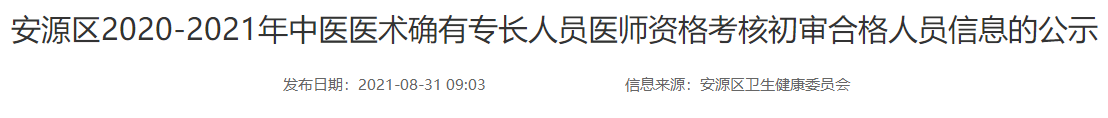“2020-2021年萍鄉(xiāng)市安源區(qū)中醫(yī)醫(yī)術(shù)確有專長人員醫(yī)師資格考核初審合格人員”文章醫(yī)學(xué)教育網(wǎng)小編搜集整理,更多醫(yī)考信息、備考資料、模擬試題請(qǐng)關(guān)注醫(yī)學(xué)教育網(wǎng)。