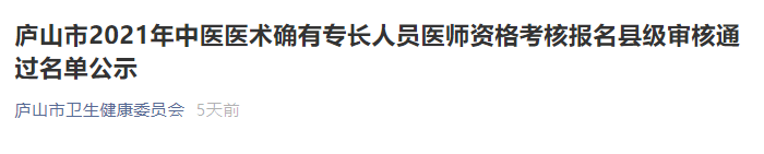 江西廬山發(fā)布了2021年中醫(yī)醫(yī)術(shù)確有專長人員醫(yī)師資格考核報名初審?fù)ㄟ^名單,具體通知內(nèi)容醫(yī)學(xué)教育網(wǎng)小編搜集整理如下: