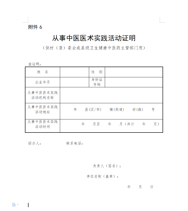 附件: 從事中醫(yī)醫(yī)術(shù)實(shí)踐活動(dòng)證明