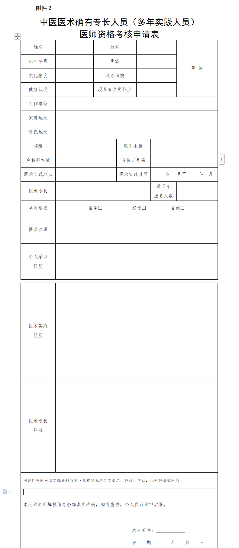 附件: 《中醫(yī)醫(yī)術(shù)確有專長人員(多年實踐人員)醫(yī)師資格考核申請表》