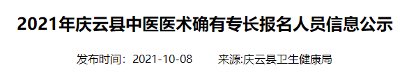附件:2021年慶云縣中醫(yī)醫(yī)術確有專長報名人員信息公示