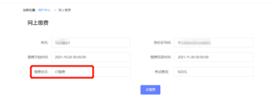 5.繳費人最終繳費成功的標志,以考核服務平臺中的“已繳費”提示為準。
