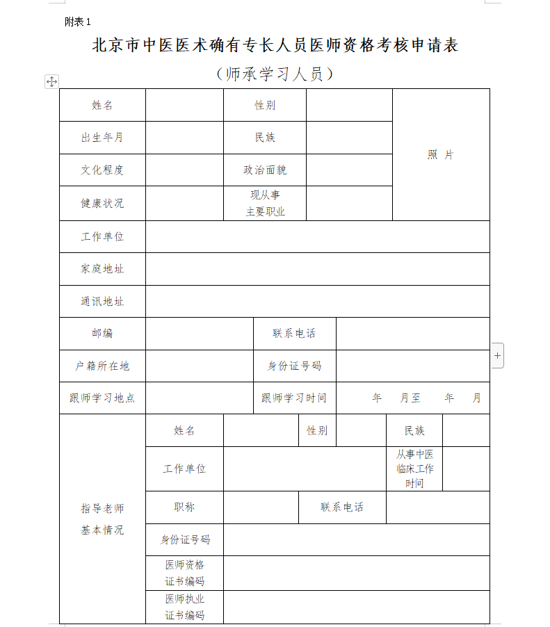 附件下載: 《北京市中醫(yī)醫(yī)術(shù)確有專長(zhǎng)人員醫(yī)師資格考核申請(qǐng)表》(師承學(xué)習(xí)人員)