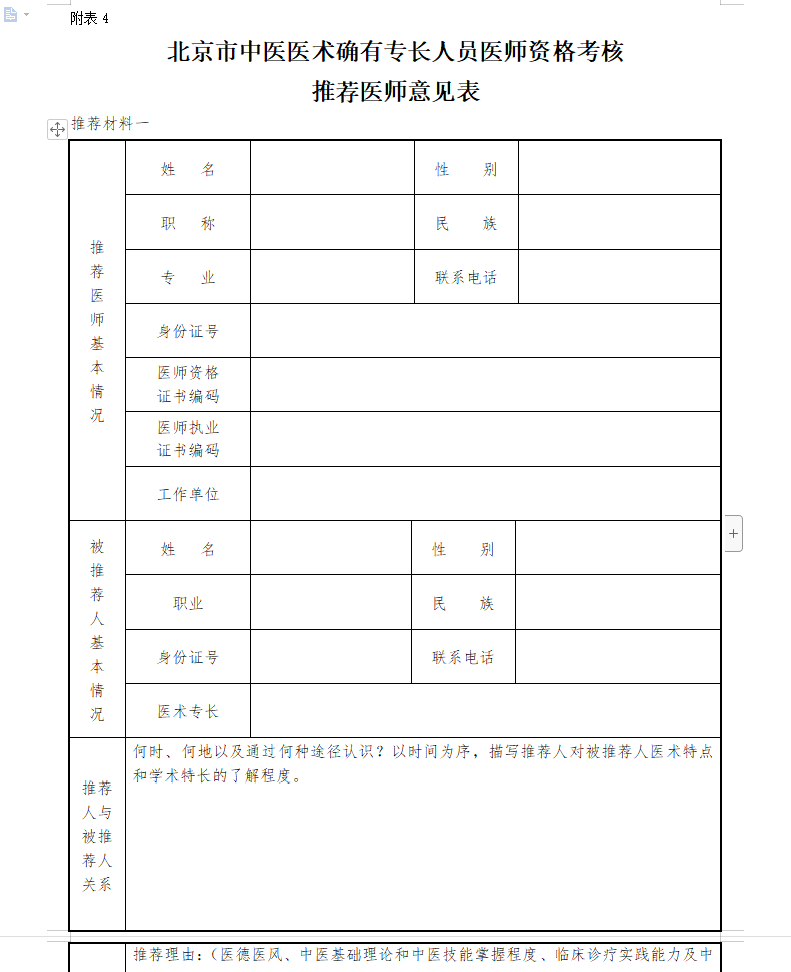 附件下載: 《北京市中醫(yī)醫(yī)術(shù)確有專長人員醫(yī)師資格考核推薦醫(yī)師意見表》