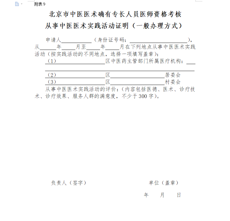附件下載: 《北京市中醫(yī)醫(yī)術(shù)確有專長人員醫(yī)師資格考核從事中醫(yī)醫(yī)術(shù)活動(dòng)實(shí)踐證明》(一般辦理方式)