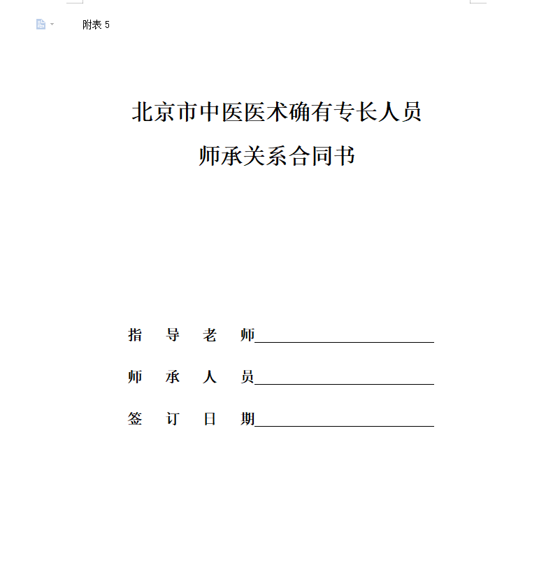 附件下載: 《北京市中醫(yī)醫(yī)術(shù)確有專長(zhǎng)人員師承關(guān)系合同書》