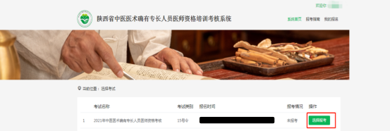 5.考試名稱“2021年中醫(yī)醫(yī)術(shù)確有專長(zhǎng)人員醫(yī)師資格考核”,點(diǎn)擊“選擇報(bào)考”。