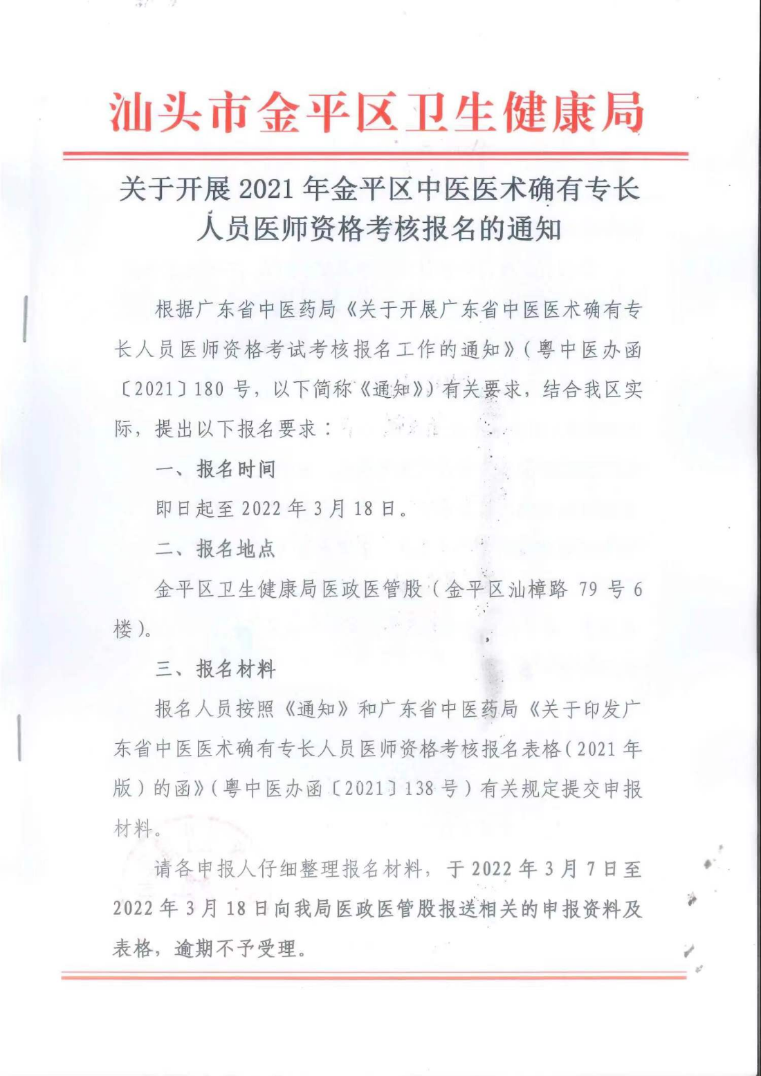 醫(yī)學教育網小編搜集整理“2021年關于汕頭金平區(qū)中醫(yī)醫(yī)術確有專長人員醫(yī)師資格考核報名通知”的內容,詳情如下: