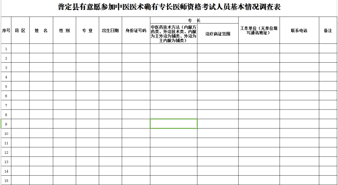 1.填報《普定縣有意愿參加中醫(yī)醫(yī)術(shù)確有專長醫(yī)師資格考試人員基本情況調(diào)查表》發(fā)指定郵箱。