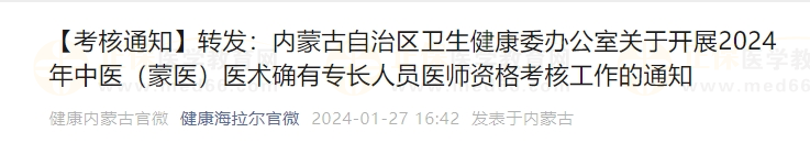 關(guān)于開(kāi)展2024年中醫(yī)(蒙醫(yī))醫(yī)術(shù)確有專(zhuān)長(zhǎng)人員醫(yī)師資格考核工作的通知