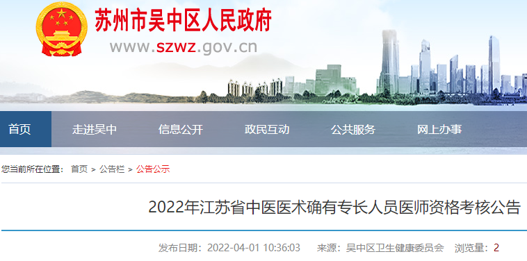 2022年蘇州市吳中區(qū)中醫(yī)醫(yī)術(shù)確有專長人員醫(yī)師資格考核公告,醫(yī)學(xué)教育網(wǎng)編輯為您搜集整理了相關(guān)文件,請考生及時查看!