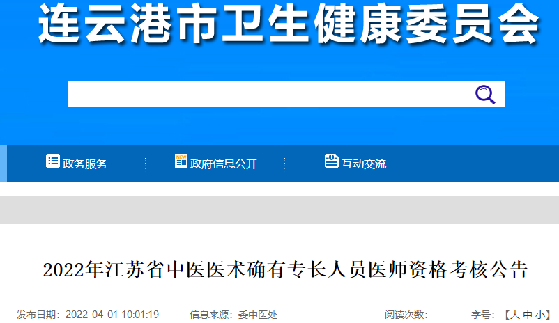 江蘇省連云港市2022年中醫(yī)醫(yī)術(shù)確有專長人員醫(yī)師資格考核公告,醫(yī)學(xué)教育網(wǎng)編輯為您搜集整理了相關(guān)文件,請考生及時查看!