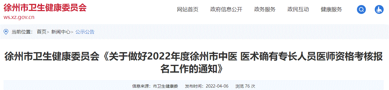 根據(jù)江蘇省中醫(yī)藥管理局《關(guān)于做好2022年江蘇省中醫(yī)醫(yī)術(shù)確有專長(zhǎng)人員醫(yī)師資格考核報(bào)名工作的通知》(蘇中醫(yī)醫(yī)政函〔2022〕9號(hào)),為做好我市考核報(bào)名工作,現(xiàn)將有關(guān)事項(xiàng)通知如下: