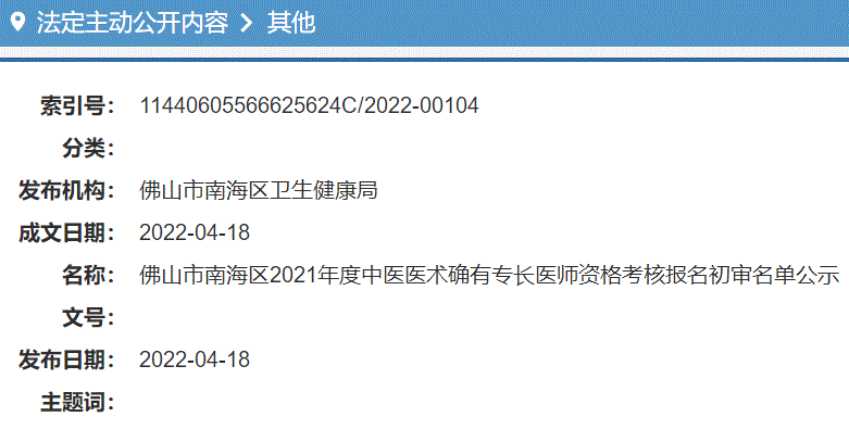附件:廣東省佛山市南海區(qū)2021年度中醫(yī)醫(yī)術(shù)確有專長(zhǎng)人員醫(yī)師資格考核報(bào)名初審合格公示名單.xlsx