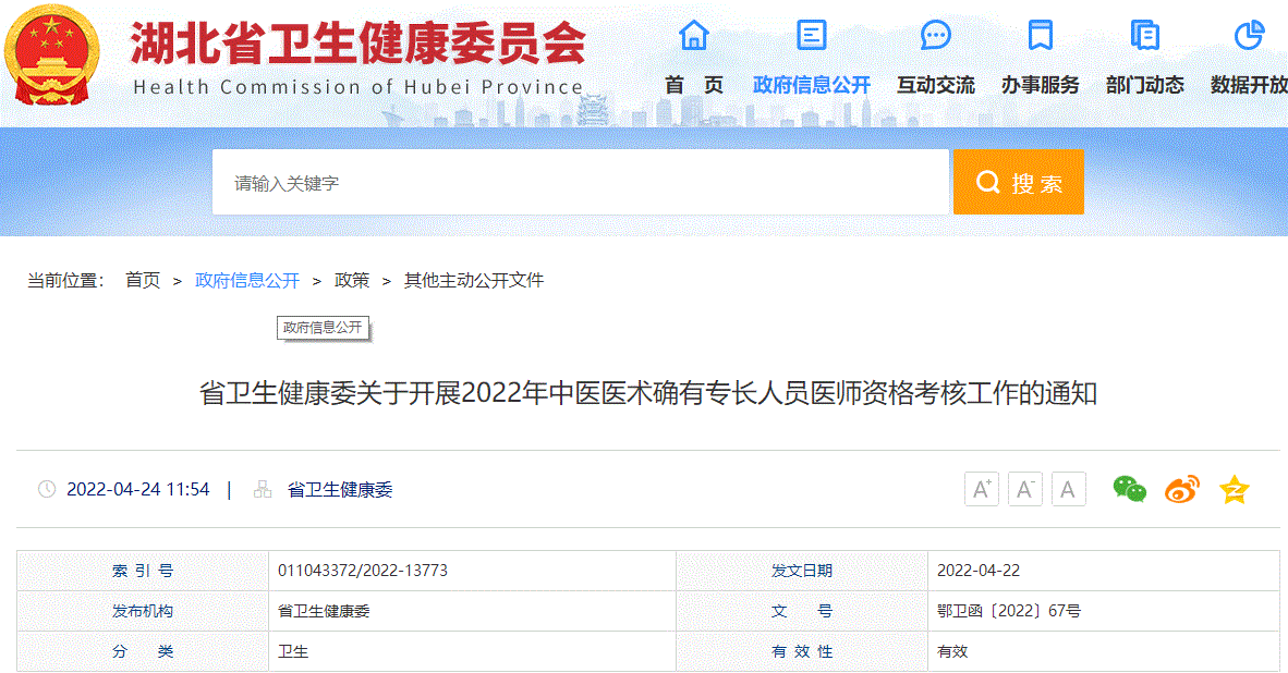 (三)為指導(dǎo)及規(guī)范申請者填報(bào)申請表格、準(zhǔn)備相關(guān)材料,省衛(wèi)生健康委發(fā)布了《省衛(wèi)生健康委關(guān)于開展2022年中醫(yī)醫(yī)術(shù)確有專長人員醫(yī)師資格考核工作的通知》。申請者可登錄湖北省衛(wèi)生健康委員會網(wǎng)站(網(wǎng)址:)查詢和下載,或咨詢所在地縣級衛(wèi)生健康行政部門。