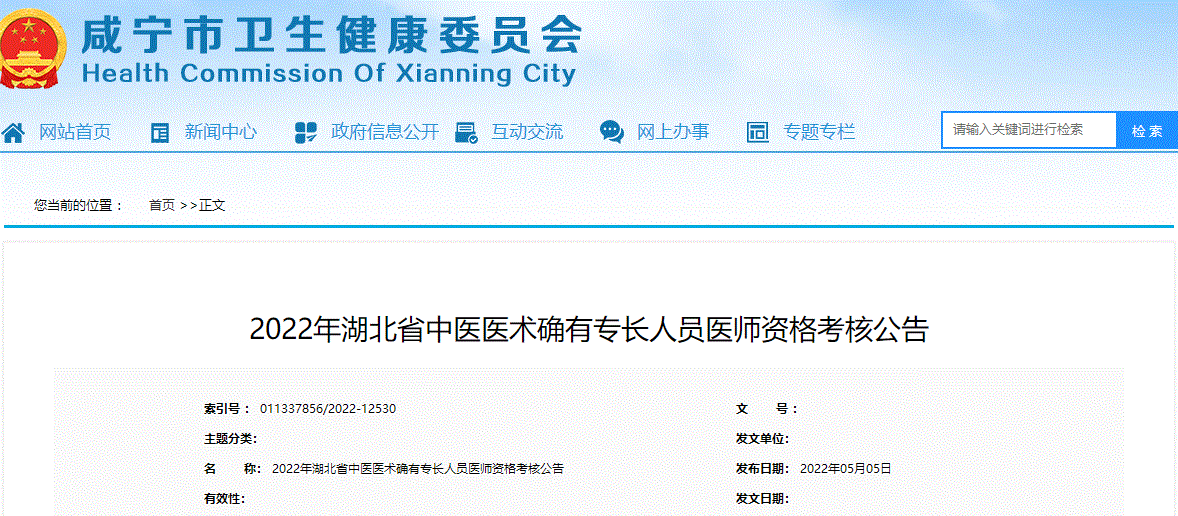 關(guān)于開展2022年湖北省咸寧市中醫(yī)醫(yī)術(shù)確有專長人員醫(yī)師資格考核工作的通知,醫(yī)學(xué)教育網(wǎng)編輯為您搜集整理了相關(guān)文件,請考生及時查看!