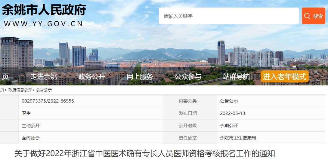 關于做好2022年浙江省余姚市中醫(yī)醫(yī)術確有專長人員醫(yī)師資格考核報名工作的通知,醫(yī)學教育網(wǎng)編輯為您搜集整理了相關文件,請考生及時查看!