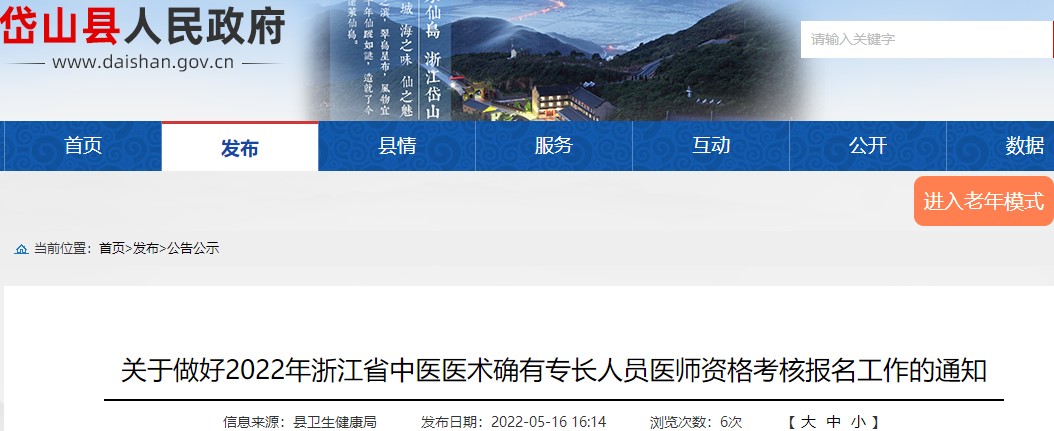 舟山市岱山縣關(guān)于做好2022年浙江省中醫(yī)醫(yī)術(shù)確有專長(zhǎng)人員醫(yī)師資格考核報(bào)名工作的通知,醫(yī)學(xué)教育網(wǎng)編輯為您搜集整理了相關(guān)文件,請(qǐng)考生及時(shí)查看!