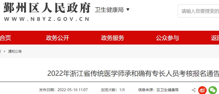 關(guān)于做好2022年浙江省寧波市鄞州區(qū)傳統(tǒng)醫(yī)學(xué)師承和確有專長(zhǎng)人員考核報(bào)名通知 ,醫(yī)學(xué)教育網(wǎng)編輯為您搜集整理了相關(guān)文件,請(qǐng)考生及時(shí)查看!