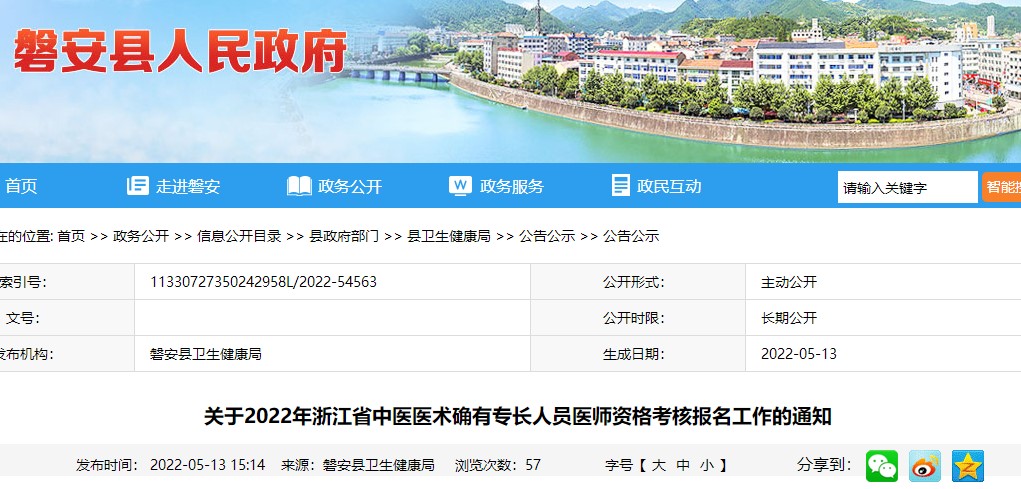 關于金華市磐安縣2022年浙江省中醫(yī)醫(yī)術確有專長人員醫(yī)師資格考核報名工作的通知,醫(yī)學教育網編輯為您搜集整理了相關文件,請考生及時查看!