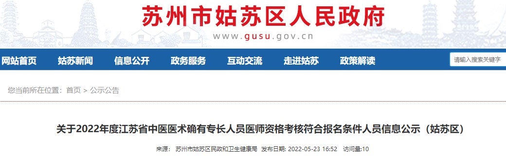 關(guān)于2022年度江蘇?。ü锰K區(qū))中醫(yī)醫(yī)術(shù)確有專長人員醫(yī)師資格考核符合報名條件人員信息公示,醫(yī)學(xué)教育網(wǎng)編輯為您搜集整理了相關(guān)文件,請考生及時查看!