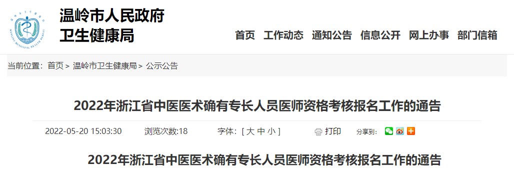 2022年浙江省溫嶺市中醫(yī)醫(yī)術確有專長人員醫(yī)師資格考核報名工作的通告,醫(yī)學教育網(wǎng)編輯為您搜集整理了相關文件,請考生及時查看!