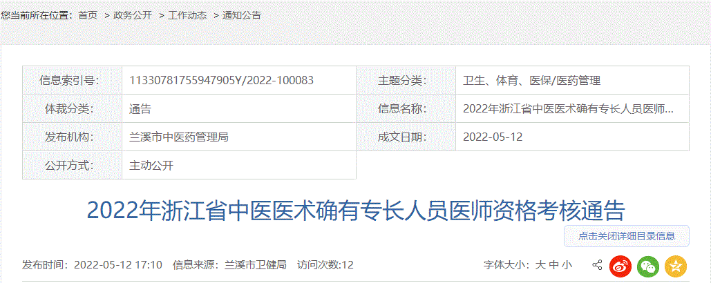 根據(jù)國家中醫(yī)藥管理局有關(guān)工作要求和《浙江省衛(wèi)生計(jì)生委關(guān)于印發(fā)浙江省中醫(yī)醫(yī)術(shù)確有專長人員醫(yī)師資格考核注冊管理實(shí)施細(xì)則的通知》(浙衛(wèi)發(fā)〔2018〕34號(hào))《浙江省衛(wèi)生健康委員會(huì)關(guān)于修改<浙江省中醫(yī)醫(yī)術(shù)確有專長人員醫(yī)師資格考核注冊管理實(shí)施細(xì)則>的決定》(浙衛(wèi)發(fā)〔2019〕39號(hào))的有關(guān)規(guī)定,2022年浙江省中醫(yī)醫(yī)術(shù)確有專長人員醫(yī)師資格考核報(bào)名工作定于2022年5月23日9:00-6月10日17:00進(jìn)行,現(xiàn)將有關(guān)事項(xiàng)通知如下: