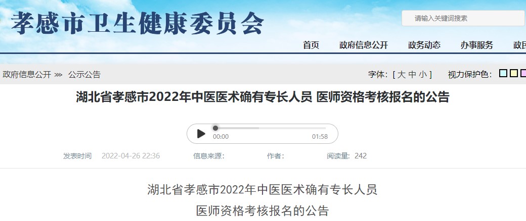 湖北省孝感市2022年中醫(yī)醫(yī)術確有專長人員醫(yī)師資格考核網上報名即將結束!醫(yī)學教育網編輯為您搜集整理了相關文件,請考生及時查看!