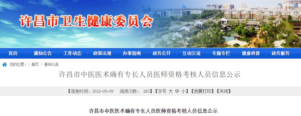 依據(jù)《河南省中醫(yī)醫(yī)術(shù)確有專長人員醫(yī)師資格考核注冊管理實施細則(暫行)》和《河南省衛(wèi)生健康委關(guān)于做好2022年度中醫(yī)醫(yī)術(shù)確有專長人員醫(yī)師資格考核報名工作的通知》(豫衛(wèi)中醫(yī)函〔2022〕2號)等文件精神要求,在縣(市、區(qū))衛(wèi)健委審核的基礎(chǔ)上,我委對申請參加2022年度中醫(yī)醫(yī)術(shù)確有專長醫(yī)師資格考核的人員進行了市級審核,現(xiàn)將市級審核合格名單予以公示,公示期為2022年5月9日--2022年5月13日。